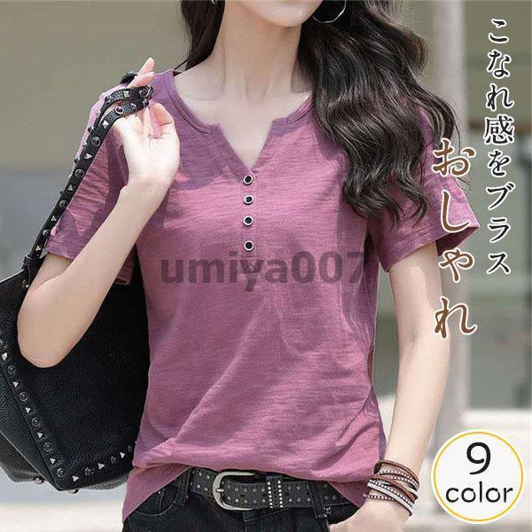 Tシャツ レディース 春 夏 トップス 半袖 tシャツ スリム カットソー プルオーバー インナー 大人 楽ちん おしゃれ 着痩せ 細身 シンプル