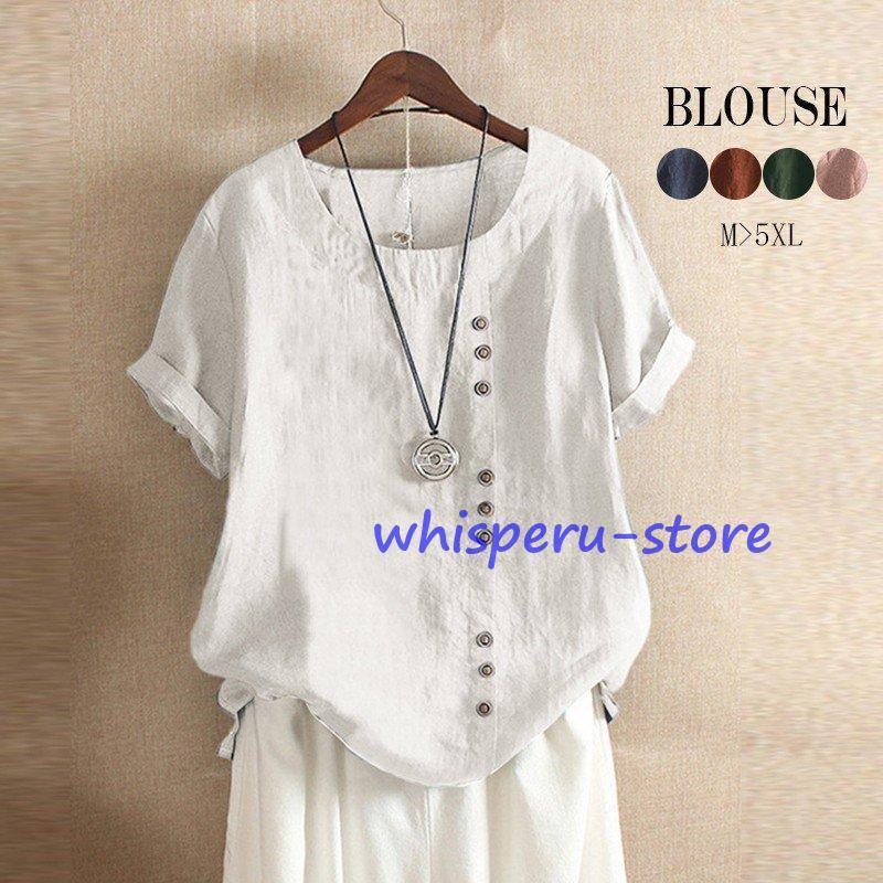 シャツ ブラウス レディース 半袖 無地 40代 トップス 夏 ボタン飾り ゆったり 大きいサイズ 20代 体型カバー