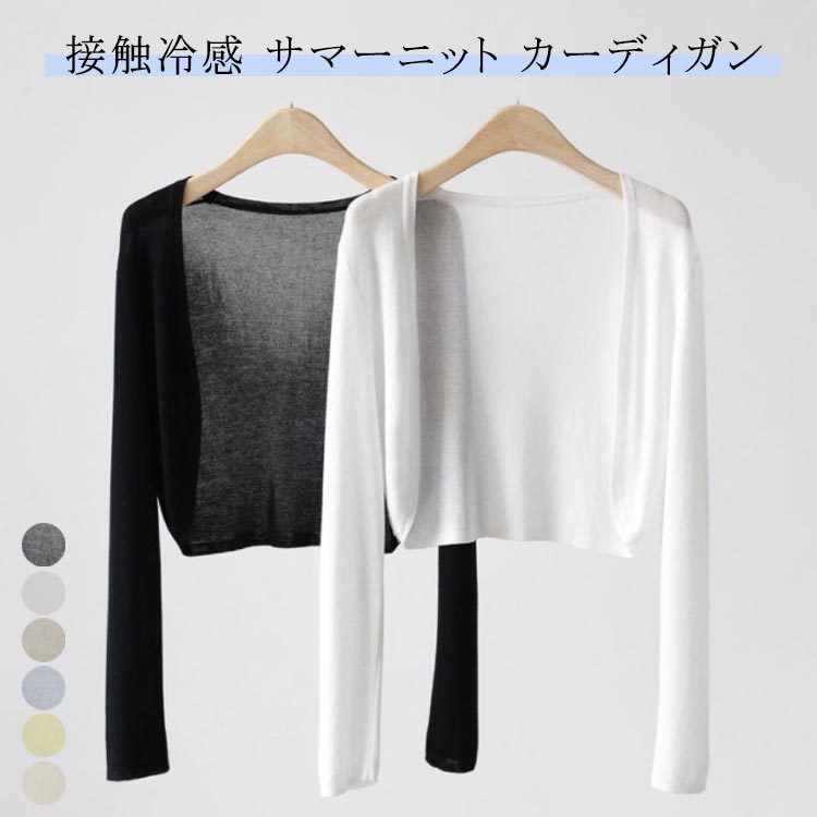 送料無料 接触冷感 カーディガン カジュアル 薄手 はおり 涼しい サマーニット カット 長袖 トップス レディース ニット アウター 紫外線対策