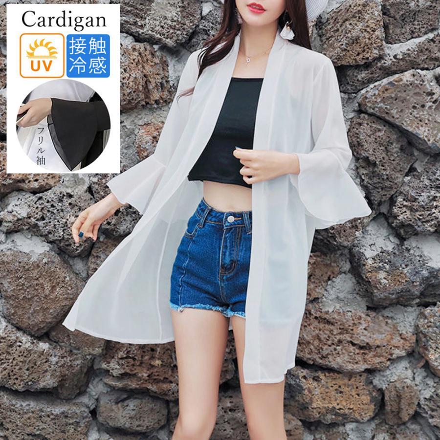 カーディガン UVケア フリル袖 トップス ボレロ アウターレディースファッション