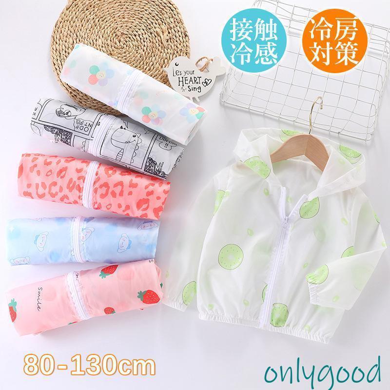 接触冷感 パーカー キッズ 子供服 男の子 女の子 フード付き 長袖 紫外線対策 カット 日焼け止め 涼しい 冷房対策