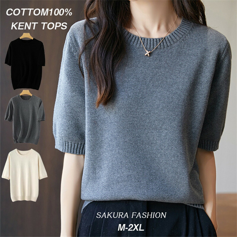 サマーニット フレンチ袖 レディース無地 韓国風 ニットトップス フレンチスリーブ ニット プルオーバー おしゃれ ニットカットソー 夏服 miniministore 88CXH-040 クルーネック