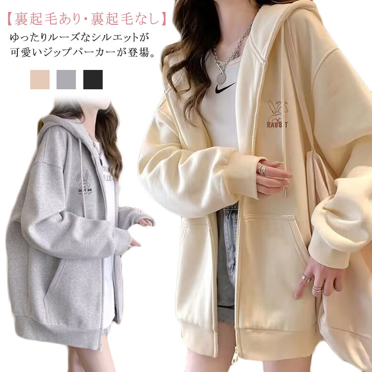 オーバーサイズ レディース パーカー ジップアップパーカー アウター 大人可愛 長袖 ゆったり フーディ ジップパーカー ビッグシルエットパーカー 春 ロング丈 フード付き カジュアル 体型カバー 着