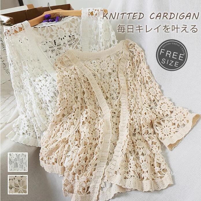 カーディガン 透かし編みカーディガン レディース 夏 レース ゆったり 夏コーデ おしゃれ Vネック 透け感 薄手 トップス 前開き 春 アウター