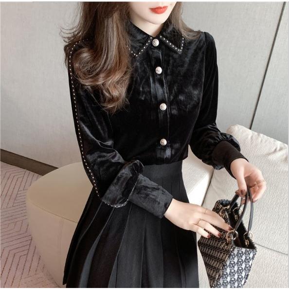 シャツ ブラウス レディース きれいめ 秋 冬 新作 長袖 トップス オシャレ 上品 ゆったり フォマル大きいサイズ 着痩せ 黒 オフィス