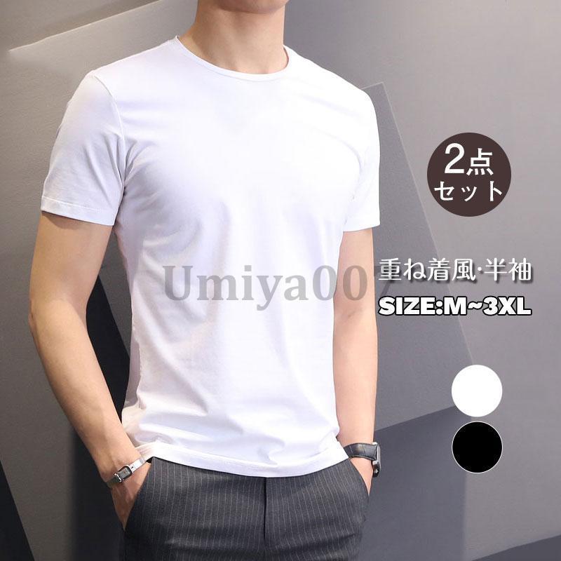 2点セット シャツ 無地 メンズ 速乾 ドライ 半袖 インナー おすすめ カットソー 通勤 通学 ブラック ユニセックス