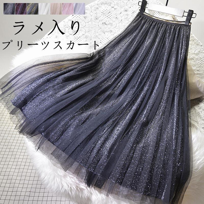 チュールスカート ロング プリーツスカート スカート 春 夏 レディース ボトムス 大きいサイズ ロングスカート プリーツ ラメ ラメ入り フレアスカー チュール