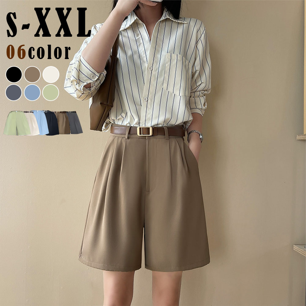ワイド&さらさら感だから、ベタつきとは無縁のハーパン タックパンツ 女性 春 夏 タックワイドパンツ ハーフ丈 ショート丈 半ズボン サイドポケット マニッシュ マスキュリン