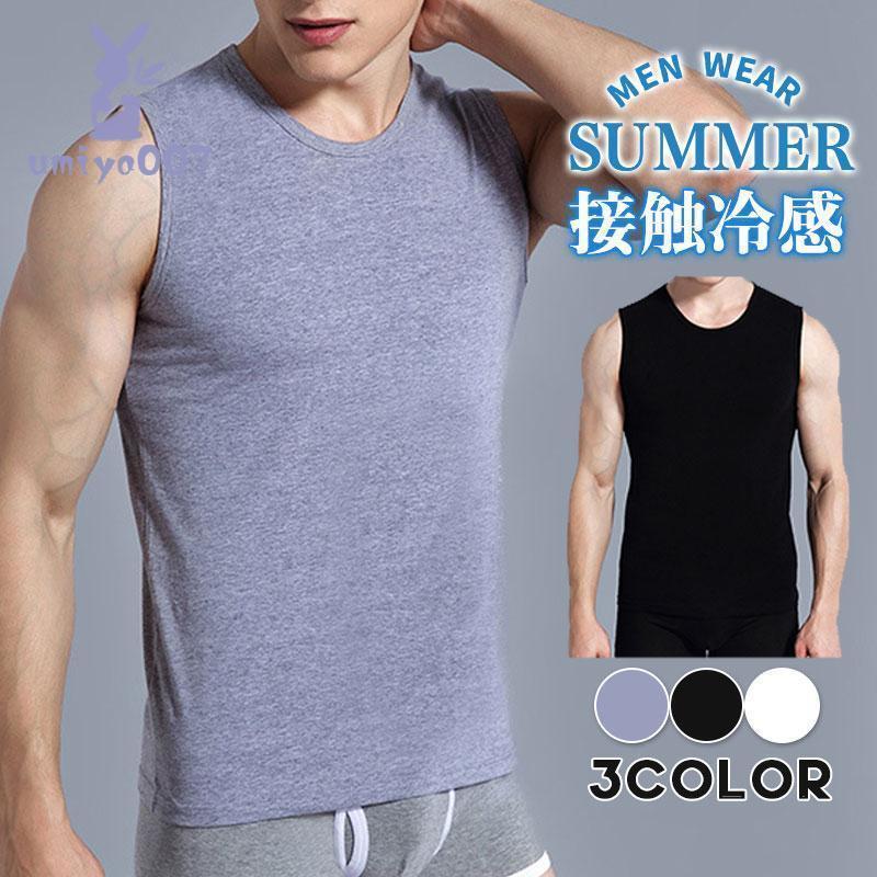 タンクトップ メンズ インナー トップス ノースリーブ 涼しい シャツ 接触冷感 ネック 快適 無地 冷感 肌着 通気性 夏