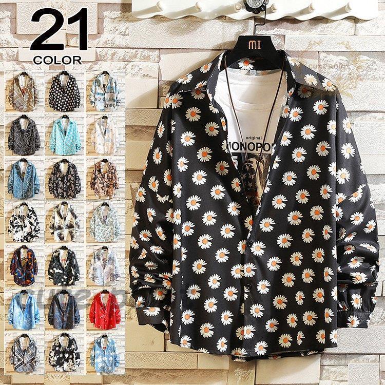 カジュアルシャツ メンズ 長袖シャツ 花柄 総柄 ゆったり おしゃれ 春物 30代40代 2021新作 春服