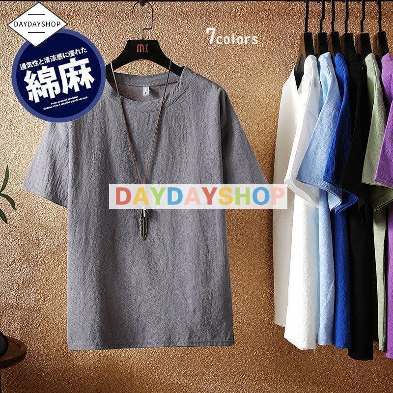 Tシャツ メンズ 半袖 丸首 無地 綿麻Tシャツ おしゃれ カジュアル 通勤 ゆったり 快適 カジュアルシャツ 薄手 夏