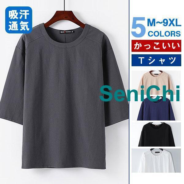 Tシャツ メンズ 半袖 夏服 プルオーバー トップス 無地 ゆったり 7分袖 夏サマー 大きいサイズ お兄系 薄手 おしゃれ 通学 20代 通気性