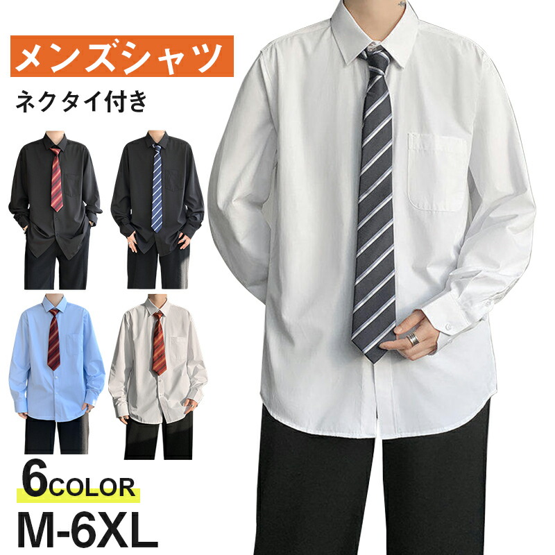 ネクタイ付き スクールシャツ 男子 長袖 白 制服 シャツ スクール ビジネス 学生 大人 ブルー ブラック フォーマルシャツ ワイシャツ レギュラーカラー 通学 中学生 高校生 高校 学生服