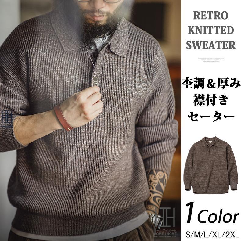 ニットポロ セーター メンズ 長袖 プルオーバー ポロシャツ ニットソー 襟付き 大きいサイズ 杢調 アメカジ トップス ゆったり 柔らかい 秋冬 長袖ポロシャツ