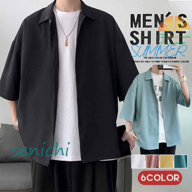 カジュアルシャツ メンズ 半袖シャツ ワイシャツ 開襟シャツ 5分袖 カジュアル ビジネス 無地 トップス おしゃれ 通勤 ゆったり 父の日 シンプル