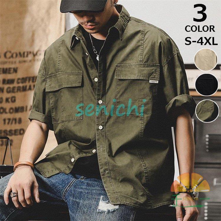 半袖 ワークシャツ メンズ 胸ポケットあり カジュアルシャツ 半袖トップス アメカジ コットン 前開き