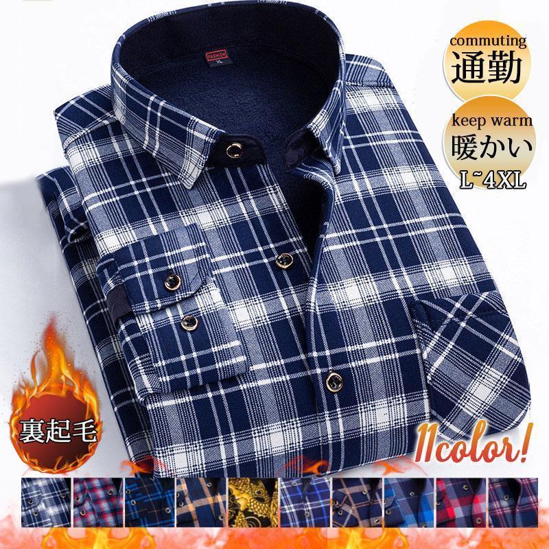 長袖シャツ メンズ チェック柄 裏起毛 カジュアルシャツ ボアシャツ ビジネス トップス 暖かい 紳士服 防寒 極暖 通勤 通学 秋冬