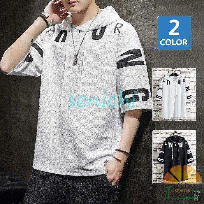 パーカー トップス 半袖 Tシャツ メンズ 涼しい 肌触り 通気性 軽量 快適 薄手 半袖Tシャツ プリント カットソー ルームウェア 部屋着 夏