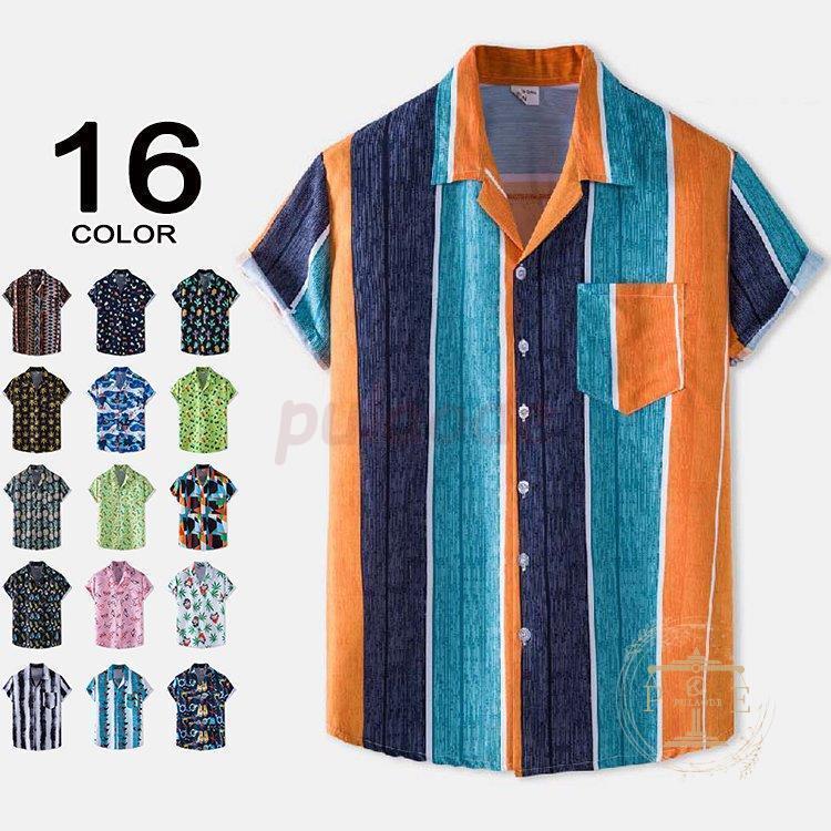 アロハシャツ メンズ 総柄 おしゃれ ボタニカル ストライプ カジュアル 開襟シャツ メンズファッション 半袖シャツ