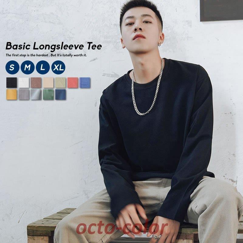 ビッグシルエット ロンT 長袖Tシャツ メンズ ドロップショルダー オーバーサイズ 韓国ファッション ストリート系 おしゃれ 無地