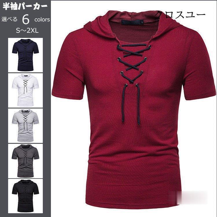 パーカー メンズ 半袖パーカー スウェット トップス 男女兼用 無地 夏 部屋着 縄 スポーツ お洒落 ゆったり