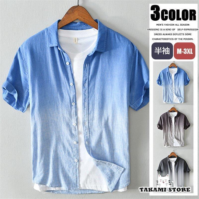 綿麻 シャツ メンズ グラデーション リネンシャツ 半袖シャツ カジュアルシャツ おしゃれ 紳士服 在宅 かっこいい 父の日 通勤
