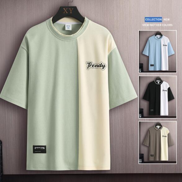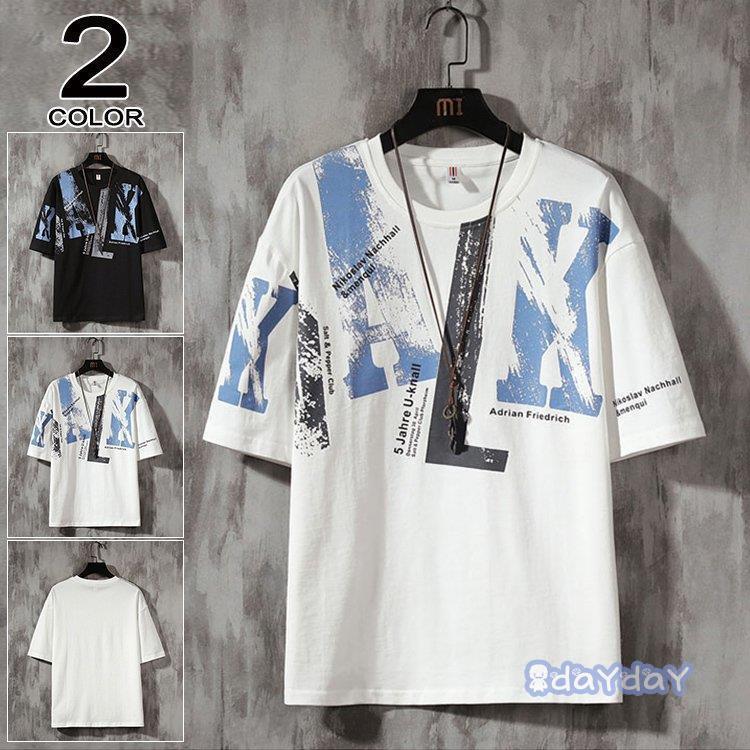 Tシャツ メンズ 半袖 夏 重ね着 丸ネック 個性的 トップス ゆったり お兄系メンズファッション カットソー カジュアル
