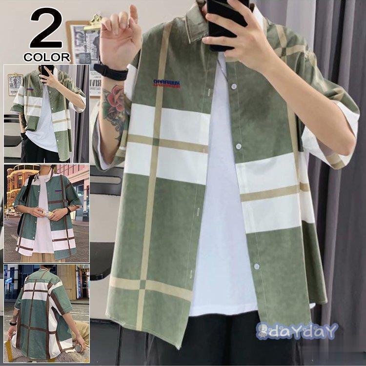 半袖シャツ 夏服 メンズ カジュアルシャツ チェック柄 開襟シャツ メンズシャツ 夏 トップス ゆったり お兄系 サマー