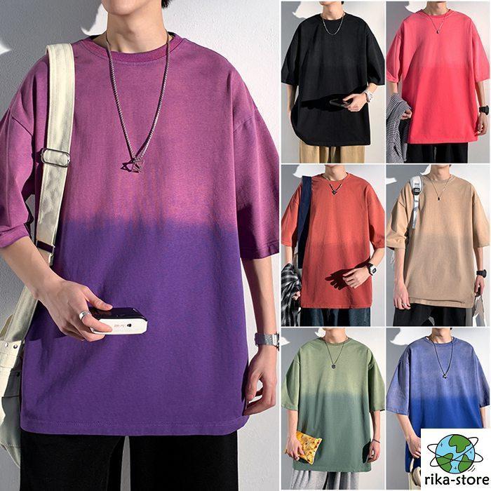 カットソー Tシャツ 半袖 グラデーション メンズ 半袖Tシャツ クルーネック ゆったり 夏 トップス 通気性 快適 薄手 インナー 軽量