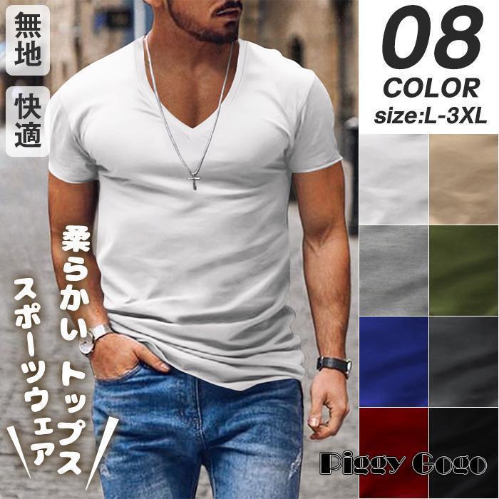 Tシャツ Vネック メンズ スポーツウェア ルームウェア インナー 無地 快適 軽い トップス シンプル かっこいい 柔らかい