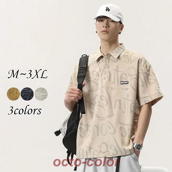 ポロシャツ メンズ 半袖 ミリタリー系 プリント ロゴT 英文字 スポーツ お兄系 トップス Tシャツ カットソー トップスメンズファッション
