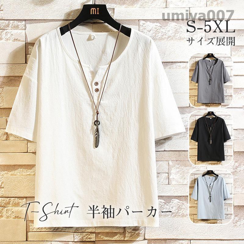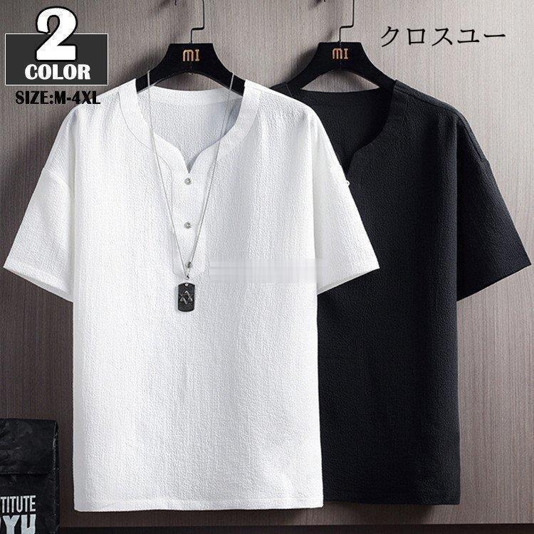 Tシャツ メンズ 半袖Tシャツ カジュアル 夏 ティシャツ 大きいサイズ ヘンリーネック 韓国風 2022 無地 Vネーク