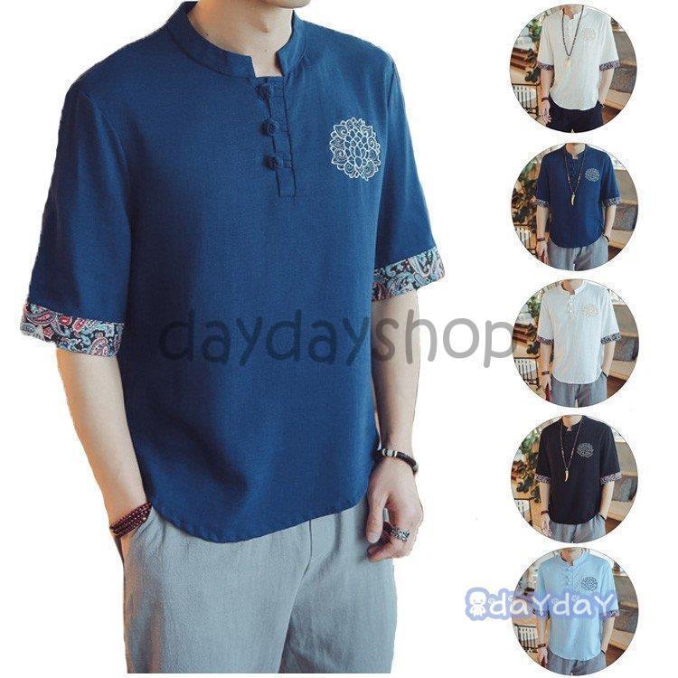 メンズ 半袖シャツ ヘンリーネック シャツ トップス カットソー 麻混 夏 無地 ティーシャツ 着心地快適 かっこいい 大人 カ オシャレ