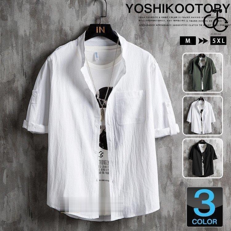 シャツ メンズ 半袖シャツ カジュアルシャツ 開襟シャツ オーバーサイズ 夏 無地 白シャツ 前開き 紳士服 父の日 テールカット