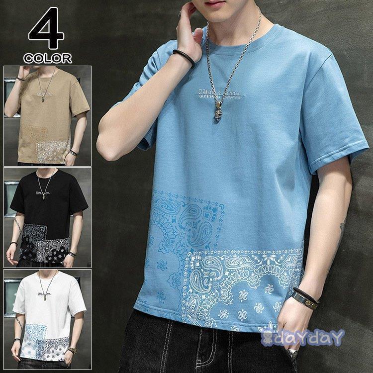夏 メンズTシャツ 半袖 総柄 トップス 大きいサイズ Tシャツ メンズ カジュアル 春物 総柄Tシャツ 3色 夏物