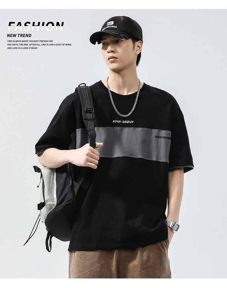 切り替え Tシャツ 英字 カジュアルTシャツ 半袖Tシャツ エンボス加工 通気 夏服 メンズ トップス 薄手