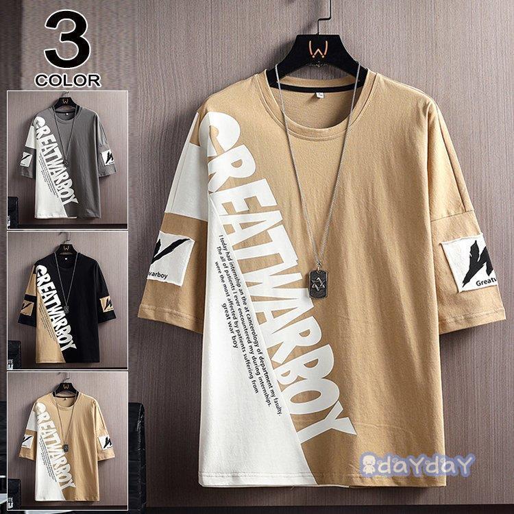 メンズ tシャツ ビッグシルエット 半袖 おしゃれ ビッグtシャツ Tシャツ ロングTシャツ レイヤード風 ゆったり