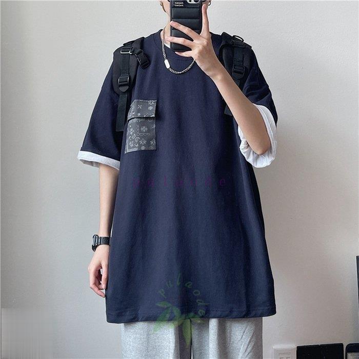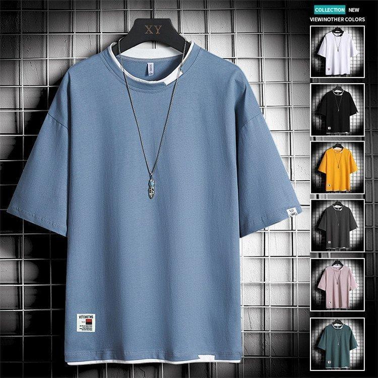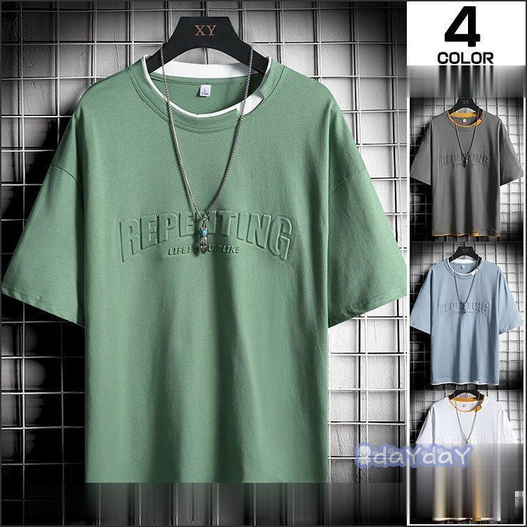Tシャツ tシャツ メンズ 半袖 丸首 半袖Tシャツ 重ね着風 夏tシャツ メンズTシャツ ゆったり カジュアル トップス 夏物 新作 おしゃれ