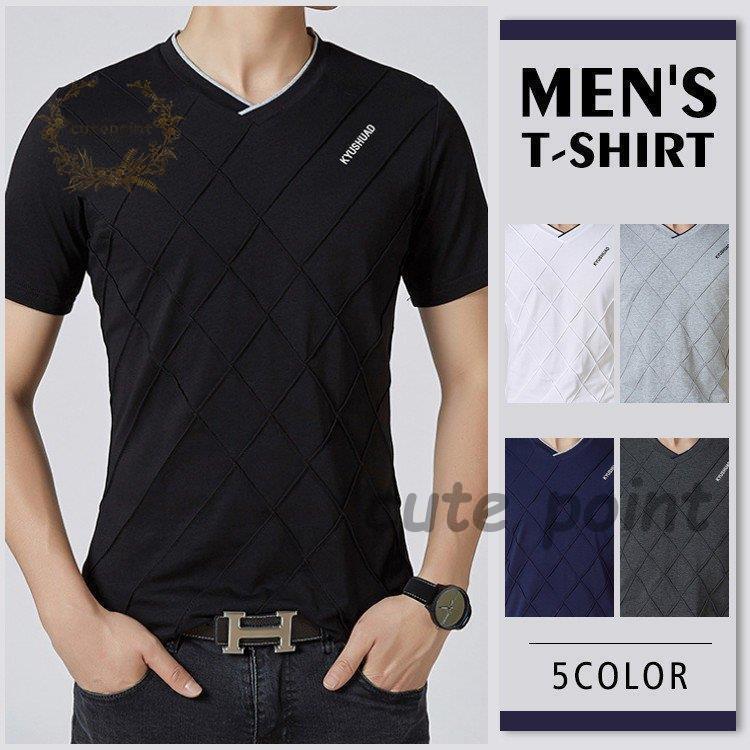 Tシャツ メンズ 半袖 夏 ロンT 無地 Vネック ロングTシャツ シンプル カジュアル 通学 トップス カジュアルシャツ 新作 5色 Tシャツ