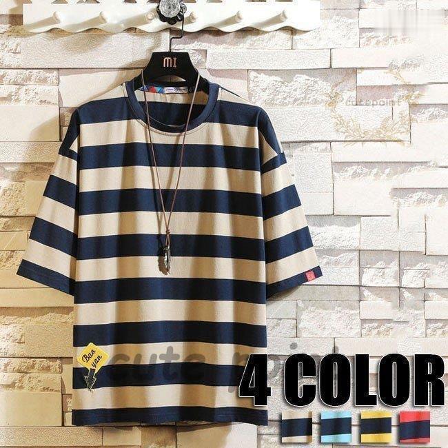 メンズTシャツ 半袖 ボーダー トップス 大きいサイズ Tシャツ メンズ 夏物 ボーダーTシャツ メンズファッション 4色 ゆったり