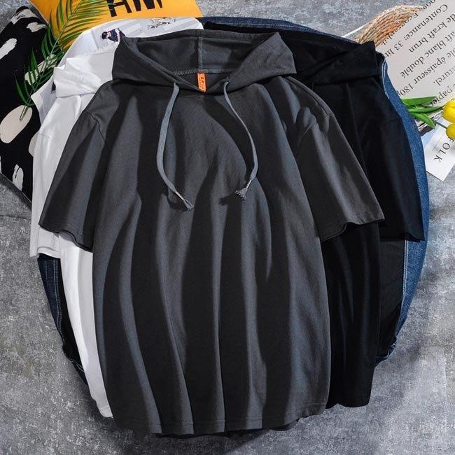 メンズ シャツ フード付きシャツ パーカー 半袖シャツ ゆったり スポーツ 無地 カットソー 夏 男性 クルーネック 柔らか シンプル 薄手 丸首