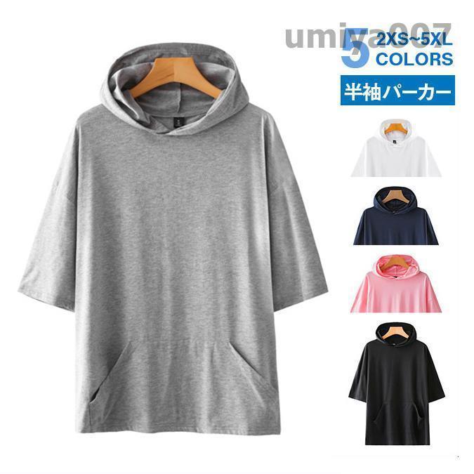 プルオーバー パーカー メンズ 半袖 夏用 涼しい フード付き Tシャツ トップス 重ね着 吸汗 速乾 普段着 サマー プール ナチュラル 部屋着