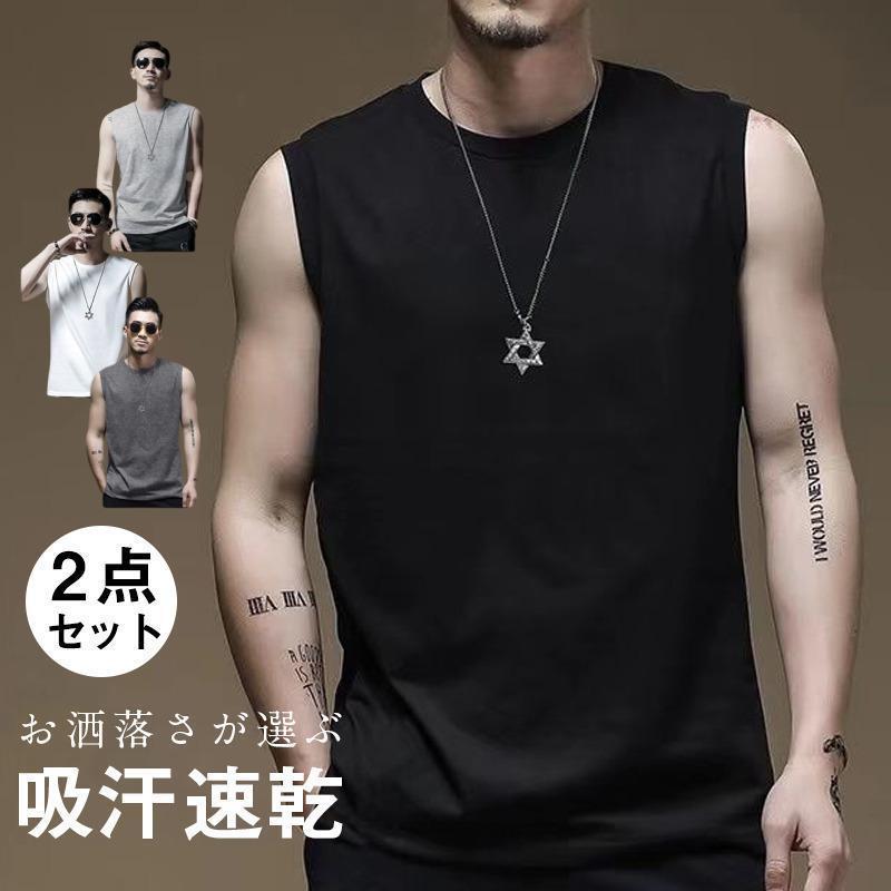 2点入り メンズ インナー タンクトップ インティー トレーニング トップス ノースリーブ 涼しい tシャツ 汗対策 夏 吸汗速乾