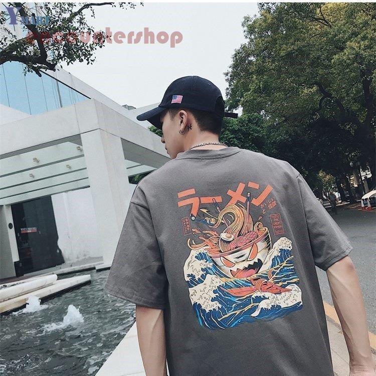 メンズ Tシャツトップス カットソー 半袖 2021夏服 シンプル 和風ラーメン 4色M 2XL カジュアル