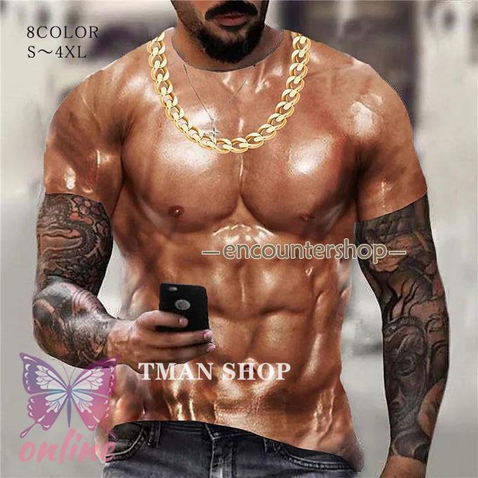 tシャツ 半袖 コスプレ 仮装 メンズ 筋肉服 マッチョ 偽筋肉 偽腹筋 グラマー男性 イケメン筋肉 おもしろ お祭り 忘年会 宴会 夏 新年会