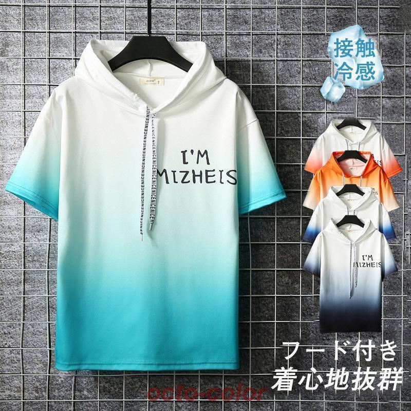 半袖パーカー メンズ 半袖 接触冷感 グラデーション フード付き 五分袖 ドライ ストレッチ スポーツ スリム 旅行 大きいサイズ 夏物 アウトドア