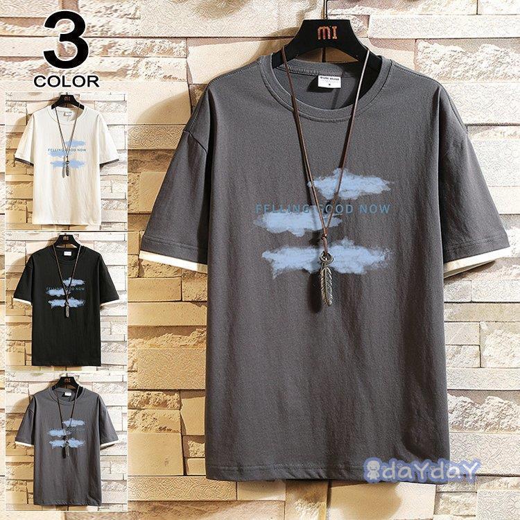 Tシャツ 半袖 メンズ カットソー 半袖Tシャツ 夏服 英字柄 スリム 丸首Tシャツ カジュアルTシャツ