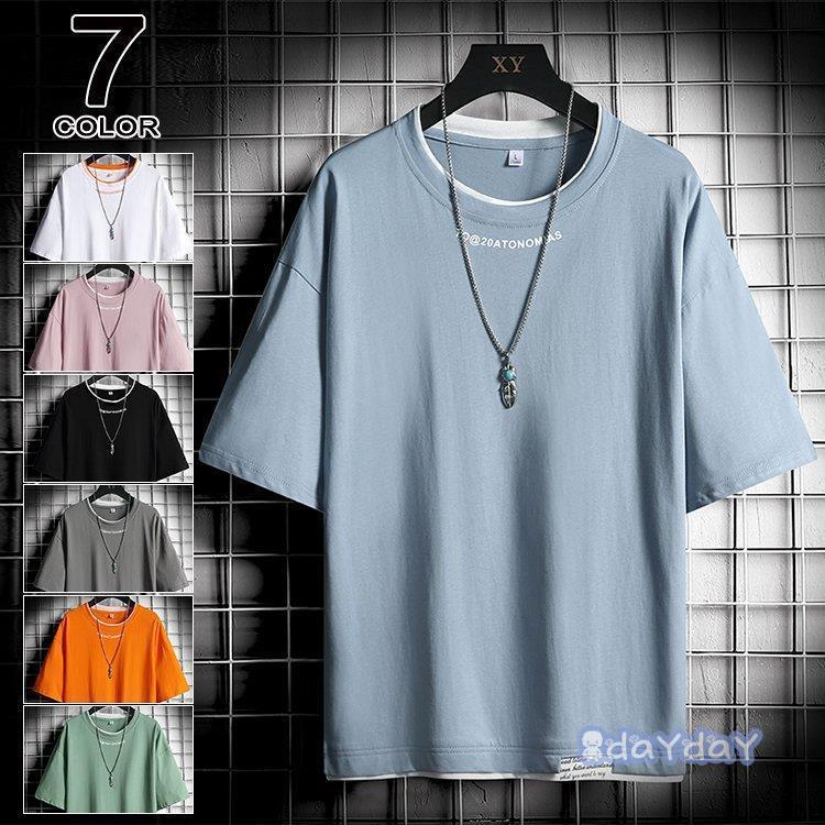 tシャツ メンズ 半袖 白Tシャツ T-shirt スポーツ 半袖tシャツ プリントT ゆったり 9色 父の日 重ね着風