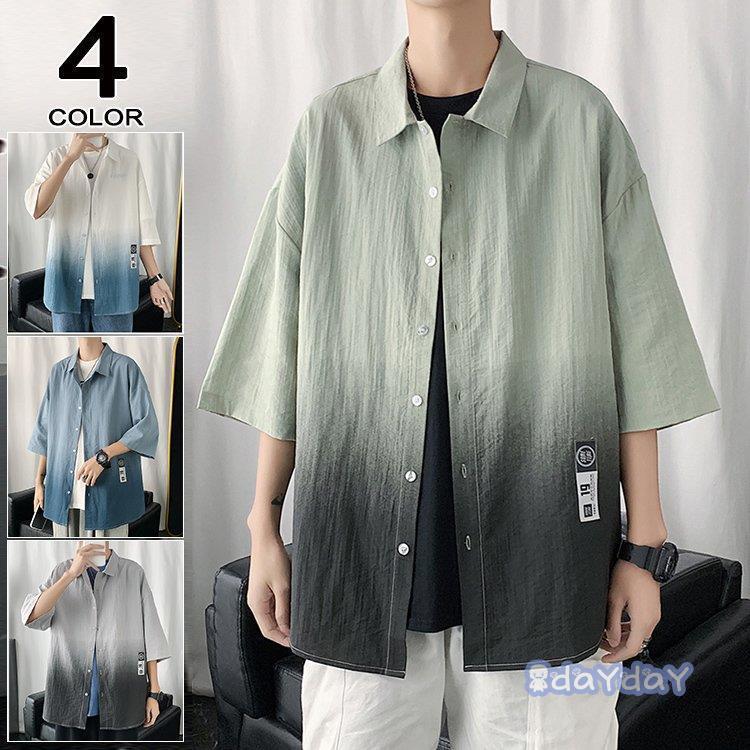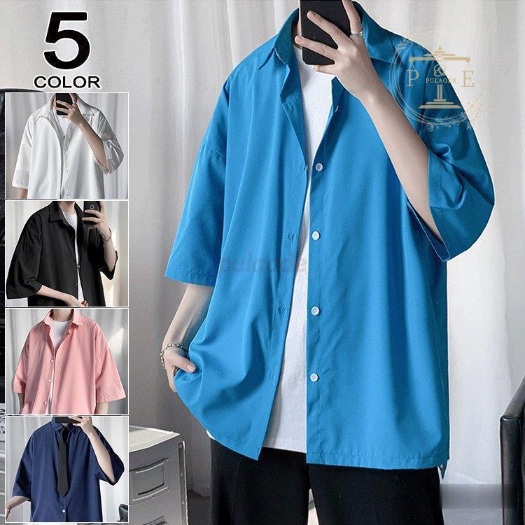 シャツ メンズ 5分袖 カジュアルシャツ 五分袖 白シャツ ルームウェア 個性 ゆったり トップス 父の日 ファッション
