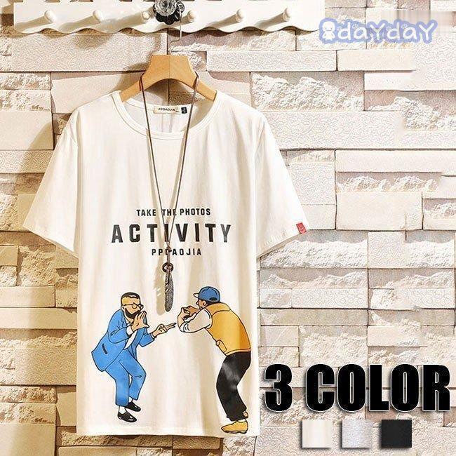 Tシャツ メンズ 半袖 プリントTシャツ クルーネック トップス メンズファッション 3色 カットソー
